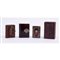QUATTRO LIBRETTI di preghiera, due con copertina in finta tartaruga ed inserti in argento, uno in tessuto e argento e uno cuoio trattato a fuoco.