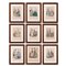 9 STAMPE colorate “Journal des Demoiselles“ in cornici di legno di mogano con angolari in ottone.