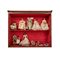 Una teca contenente una collezione di sette bambole antiche e un automa, l’automa raffigura una figura femminile atta a macinare il caffè, meccanismo inferiore, abiti d’epoca originali epoca 1660 circa. Sette bambole del XVIII secolo in legno, cartapesta e cera, occhi in pasta vitrea e vestiti tutti originali dell’epoca eccetto una bambola del XIX secolo. Un portamonete femminile in lino operato con conterie policrome, a disegno di uccellino, chiusura in cunutiglia d’argento. Epoca XVII secolo; due borsellini con corpo ad anfora, ansa per monete rivestiti in conterie rosso e bianco manifattura siciliana XVII secolo; un fanciullo in cera entro girello realizzat0 in conterie, abiti d'epoca coevi del XVIII secolo; sette oggetti in miniatura per bambole in argento, parte di servizio per bambola in opaline decorato con motivi floreali, un piccolo tavolo con stoviglie per bambola; tre piccoli personaggi da presepe in cartapesta del XVIII secolo.