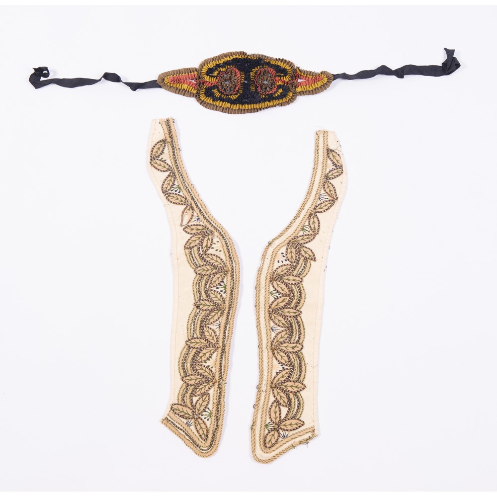 Una pettorina applicabile in panno ricamato sulle mostre con cordoncini di lana, velluto e oro.