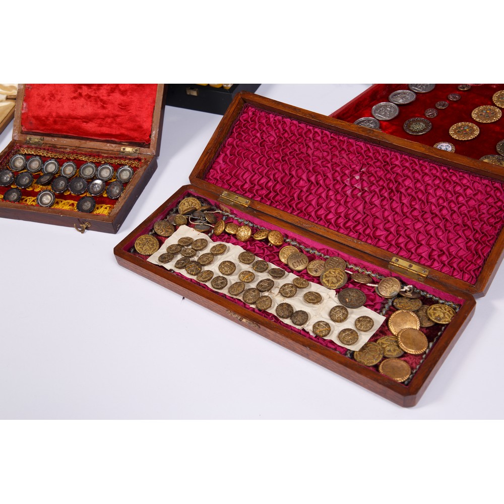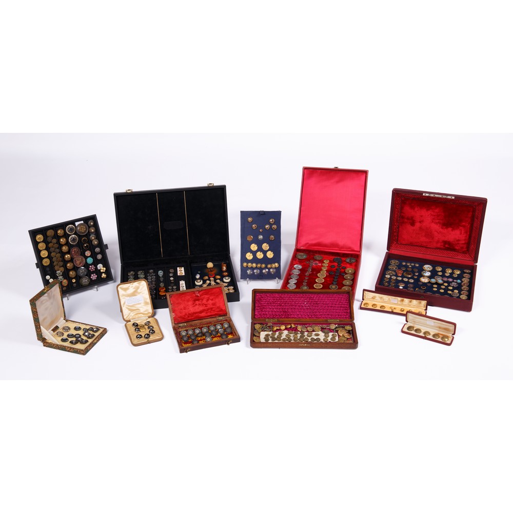 Nove scatole contenenti importante Collezione di bottoni settecenteschi e ottocenteschi in svariati materiali, argento, rame, bronzo, ottone.