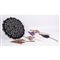 Uno con fusto in legno ripiegabile, piccolo manico curvato, stecche in metallo copertura in seta color marrone e blu, frange in seta, puntale in osso; uno con fusto in legno, manico in osso con decorato con motivi floreali, stecche in metallo, copertura in seta con ricami a perline nere, puntale in osso; uno con fusto in legno, manico in osso, copertura in seta decorata a righe policrome, puntale in osso, (presenta rotture); uno con fusto in legno, manico dipinto in nero nei toni dell’avorio, copertura in panno nero con trafori in tessuto chiaro