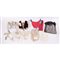 Due bustini ricamati in tulle e pizzo, epoca 1860; un collo in pizzo e tre maniche in tulle con fiocchi in raso celeste; un corpetto il raso rosso con perfili celesti XIX secolo; un tulle ricamato in oro ricamato XIX secolo.