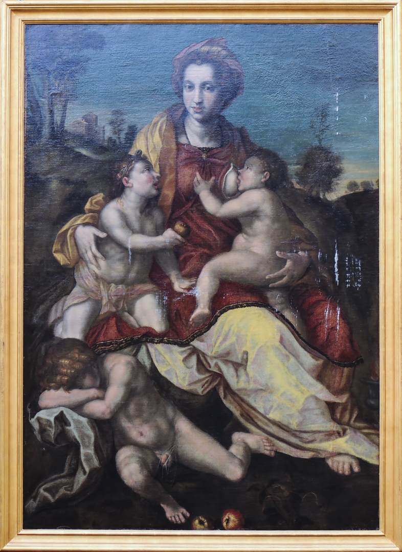 SCUOLA FIORENTINA DELLA FINE DEL XVI/ INIZIO DEL XVII SECOLO La Carità olio su tela, in cornice cm 175x119