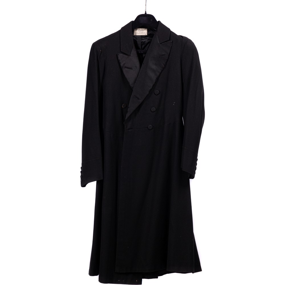Finanziera in panno con revers e fodera interna in raso di seta color nero. Abbottonatura a doppio petto fornita da sei bottoni foderati, manica riquadrata con quattro bottoni foderati. Etichetta C. Giuliana Palermo.