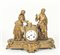 OROLOGIO DA TAVOLO IN METALLO DORATO fine del XIX secolo sormontato da figura femminile e maschile vicino ad un pozzo, quadrante circolare, su base ovale con piedini a ricciolo, da revisionare h cm 30x37x14