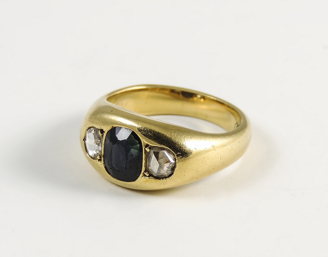 Lot 380 | ANELLO A PONTE IN ORO GIALLO, ZAFFIRO E DIAMANTI Anni Venti al centro zaffiro...