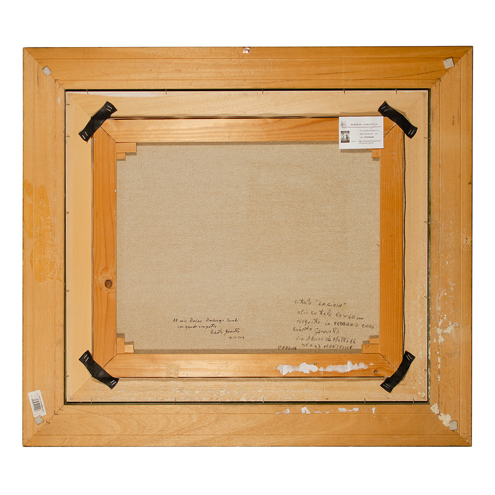 Firmato, datato e titolato al verso: “ La gioia” eseguito in febbraio 2006 Roberto Garavello