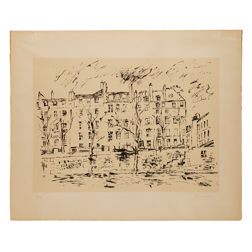 litografia su carta Rives, ed. 3/18, foglio cm 45,4x55,2, lastra cm 32x44,5. Firmata in basso a destra e numerata in basso a sinistra.