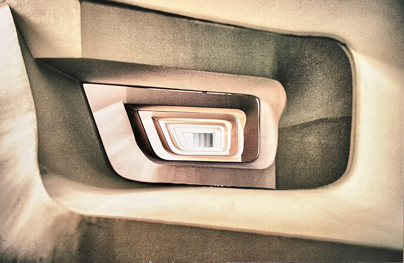 Progetto fotografico seriale della visione prospettica dell'artista sulle trombe delle scale di palazzi milanesi