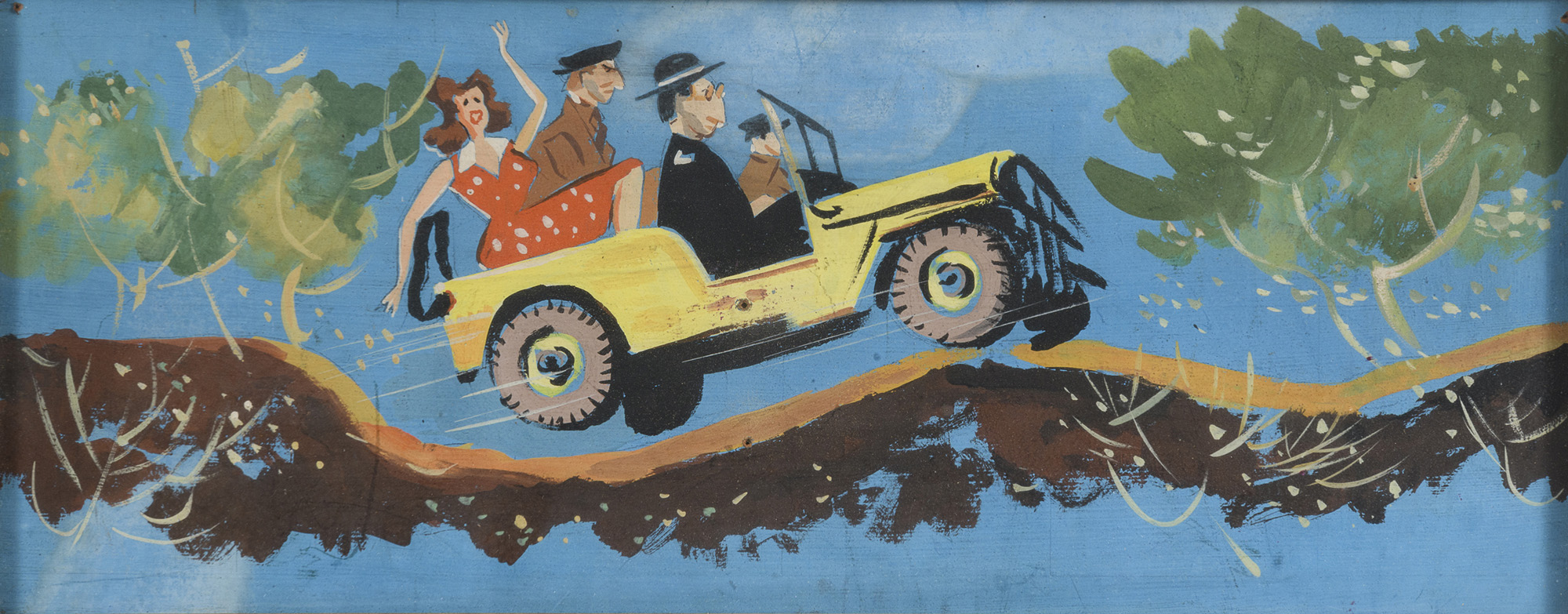Bozzetto corsa sulla Jeep, anni '50