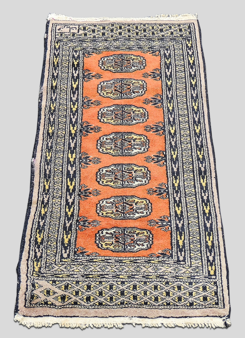 TAPPETO PREGHIERA fondo rosso ruggine, campo con sette medaglioni cm 104x47