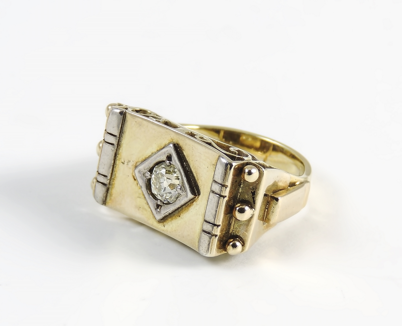 ANELLO A PONTE IN ORO GIALLO E DIAMANTE Anni Trenta al centro brillante taglio vecchio gr 8,10