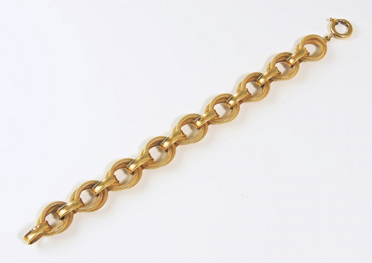 BRACCIALE IN ORO GIALLO UnoaErre, Anni Sessanta con grandi maglie intrecciate gr 23,3