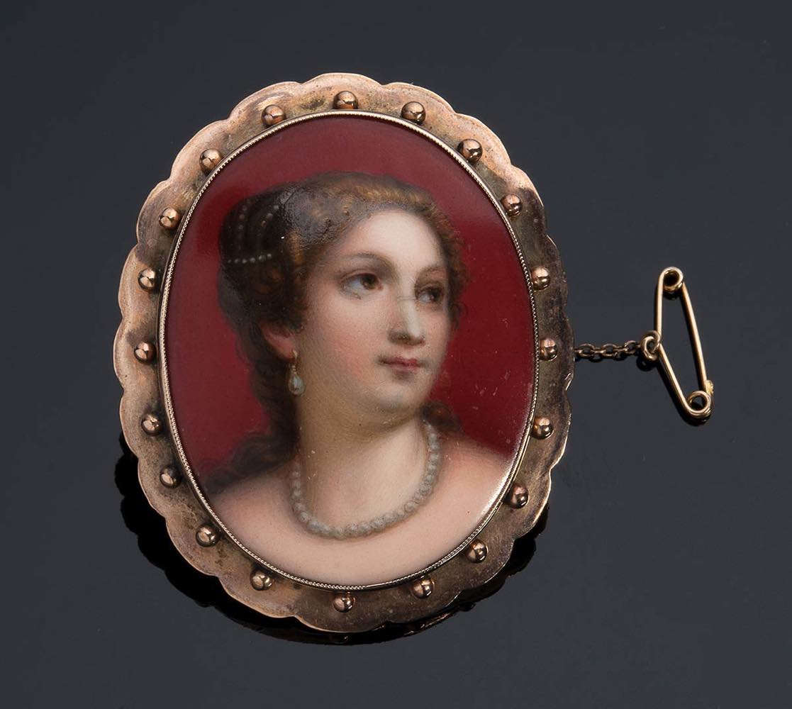 Spilla vittoriana inglese con miniatura - XIX secolo