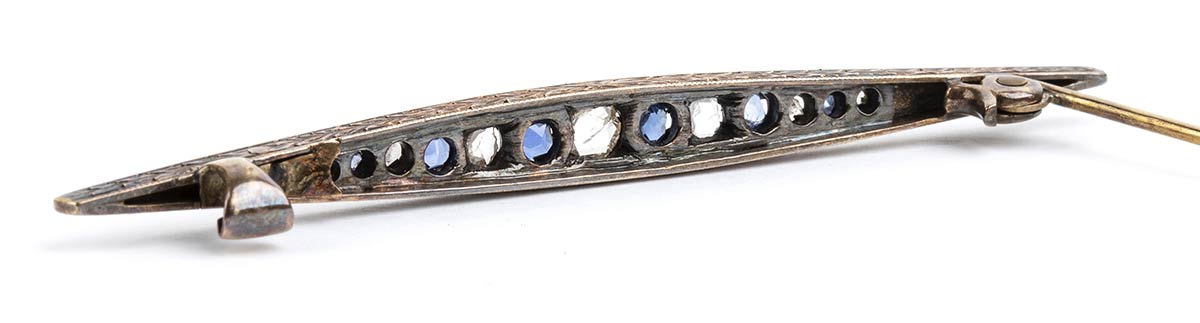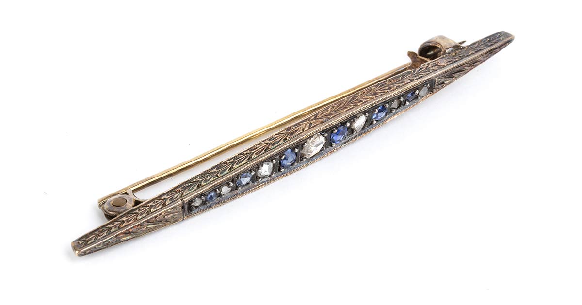 Spilla a barretta in oro, zaffiri e diamanti - fine XIX secolo