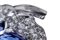 platino ed oro bianco 18k, motivo a fiore incastonato con 4 zaffiri ovali per circa 19,00 ct totali, contornati da 108 diamanti rotondi taglio brillante e taglio tapered 2,30 ct circa, E-F, IF-VVS. Punzonato "testa di cane volta a destra e testa d'aquila volta in alto".