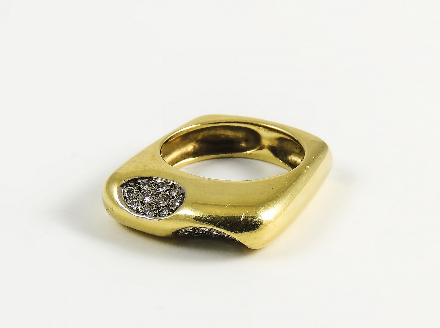ANELLO IN ORO GIALLO E BRILLANTI Angela Cummings per Tiffany&Co, Anni Settanta di forma rettangolare leggermente bombata, impreziosito da riserve ovali impreziosite da pavè di brillanti gr 11,3