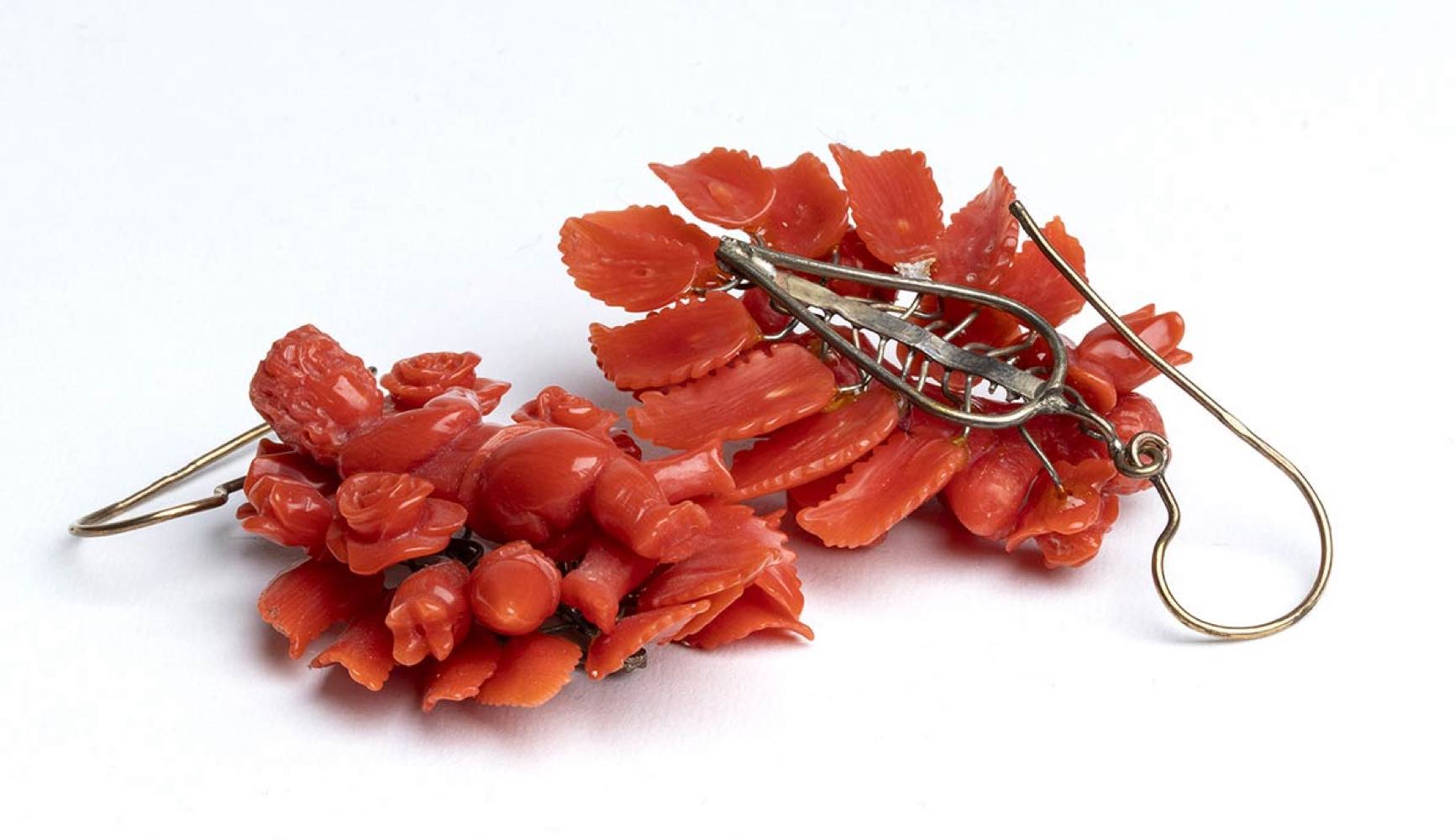 Orecchini pendenti in corallo Mediterraneo ed oro