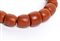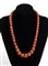 oro giallo 18k, ad un filo di barilotti di corallo Mediterraneo (corallium rubrum) disposti in gradazione. Fermezza incisa con motivo di girali.