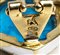 oro giallo 18k, incastonati con 2 granati a forma di cuore, 2 cammei incisi su pasta vitrea azzurra con raffigurazione in stile clssico, pavè di diamanti rotondi taglio brillante 0,75 ct circa, G-H. VS-SI. Punzonati "750".