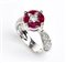 oro bianco 18k, incastonato con diamanti rotondi taglio brillante 0,40 ct circa, G-H, VVS-VS, e quattro rubini a navetta 0,60 ct circa. Punzonato "750".