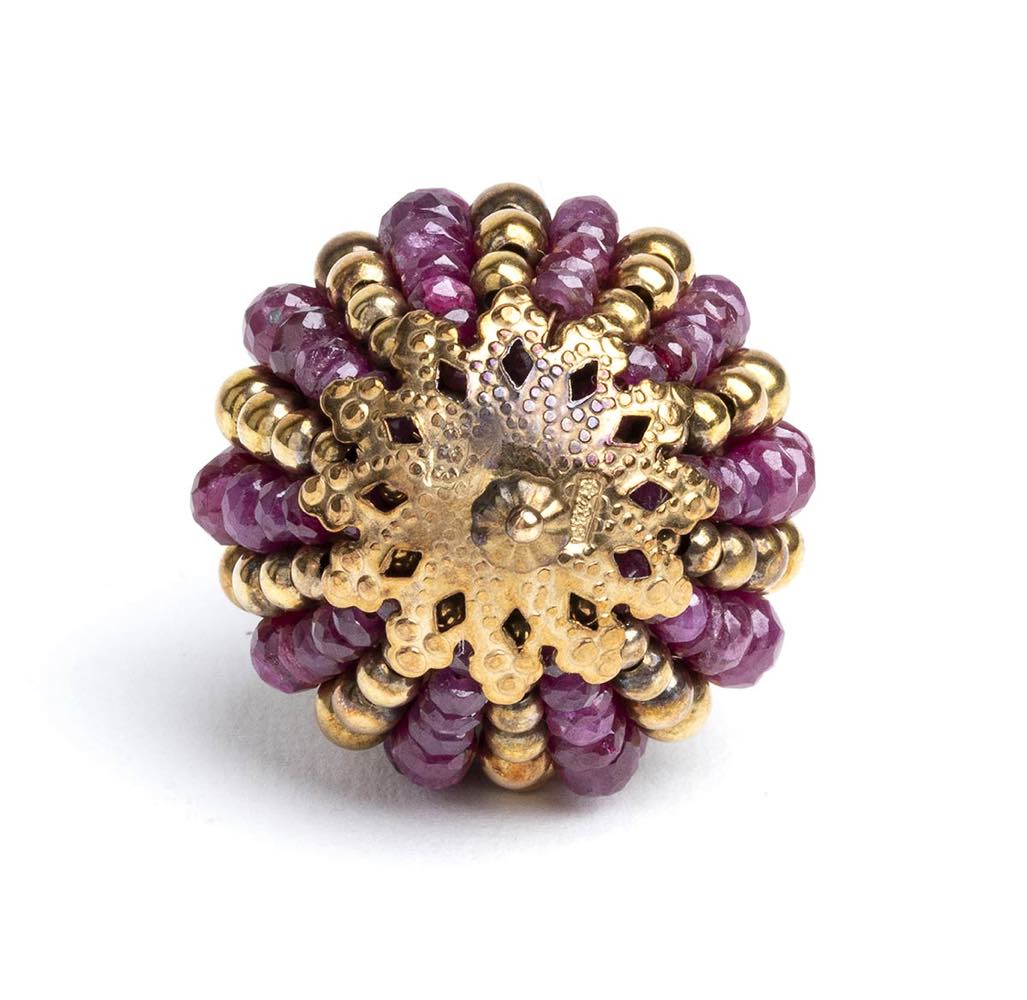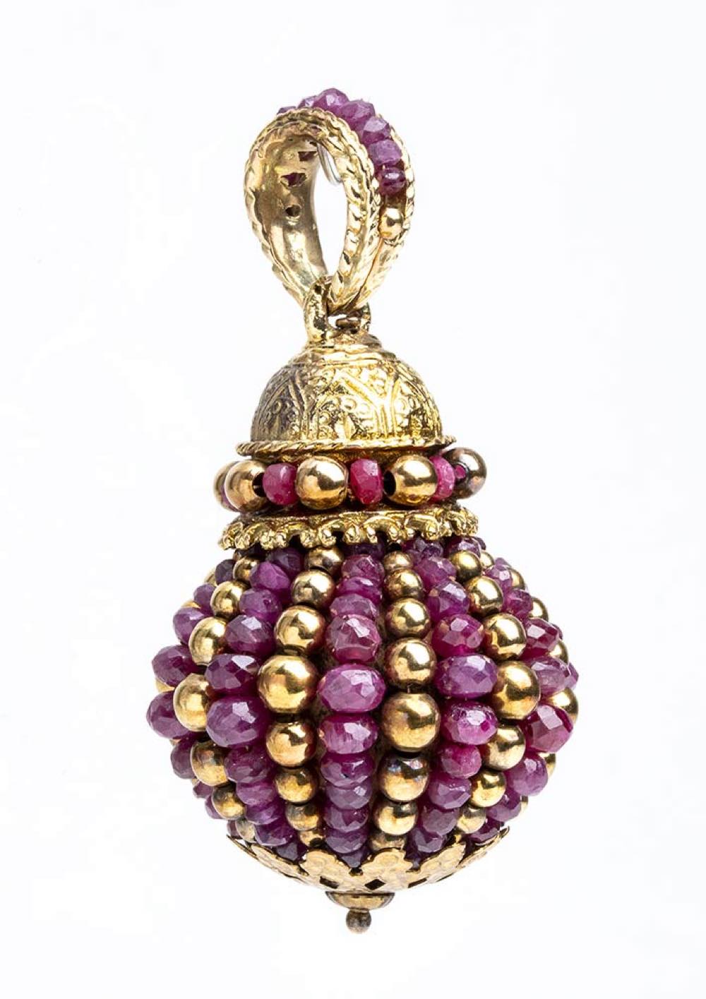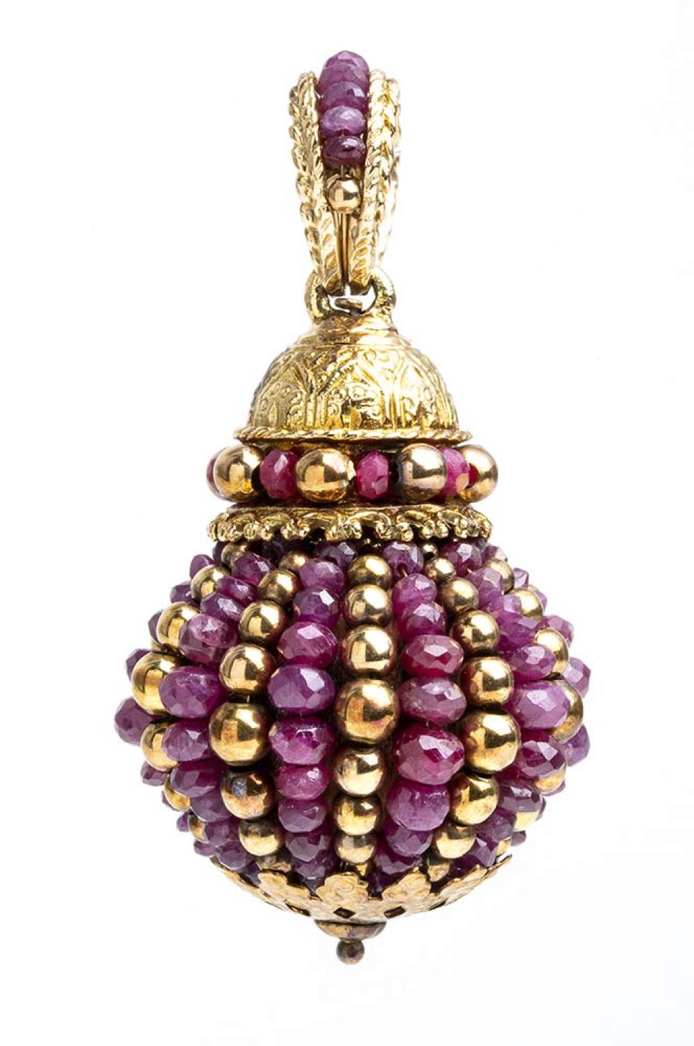 Pendente "pigna" in oro e rubini