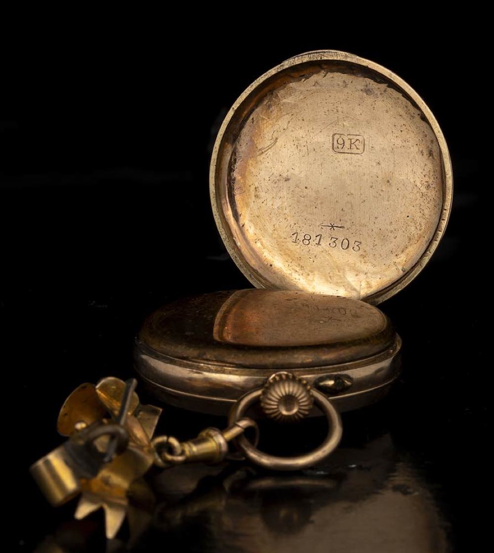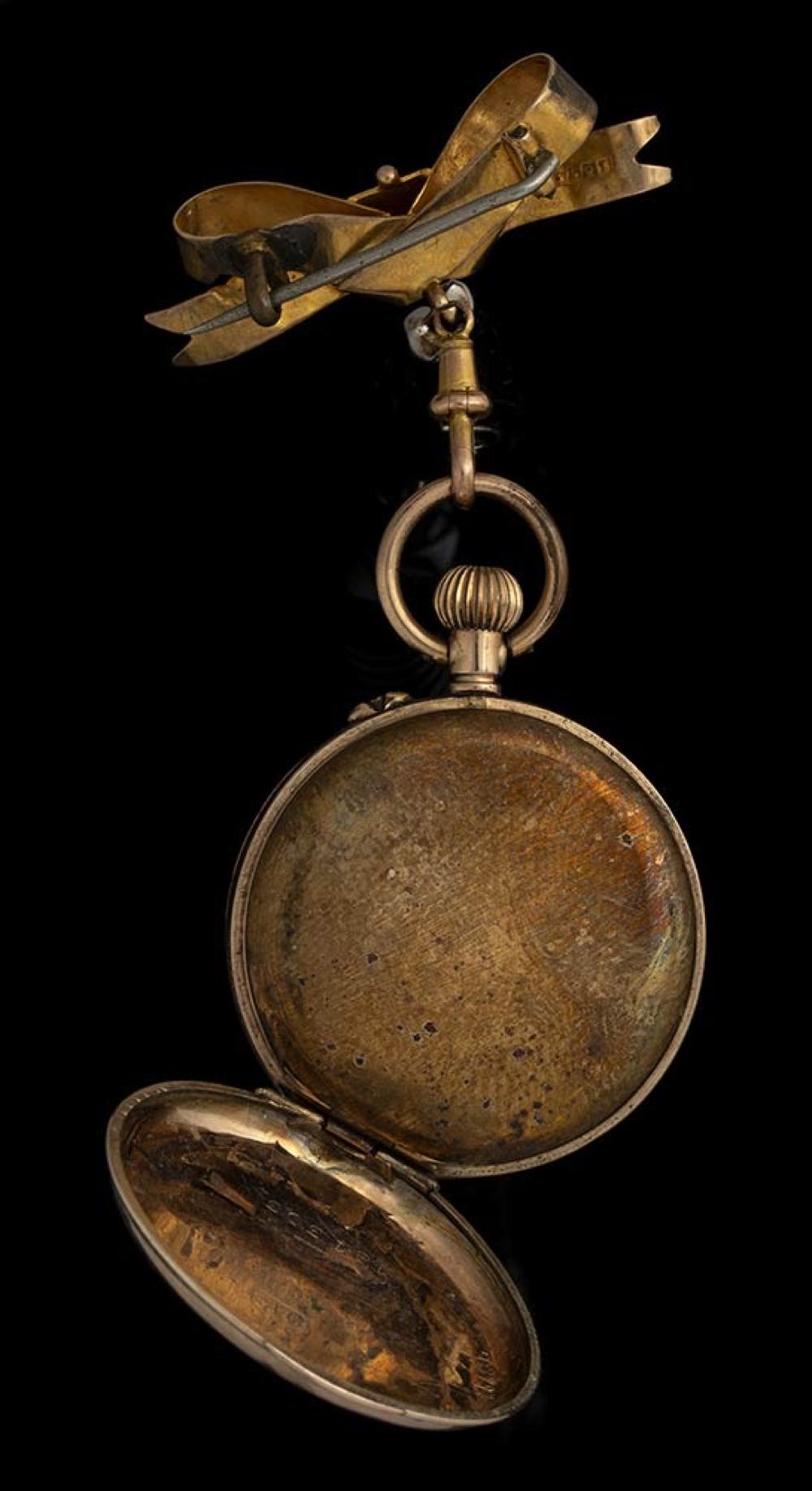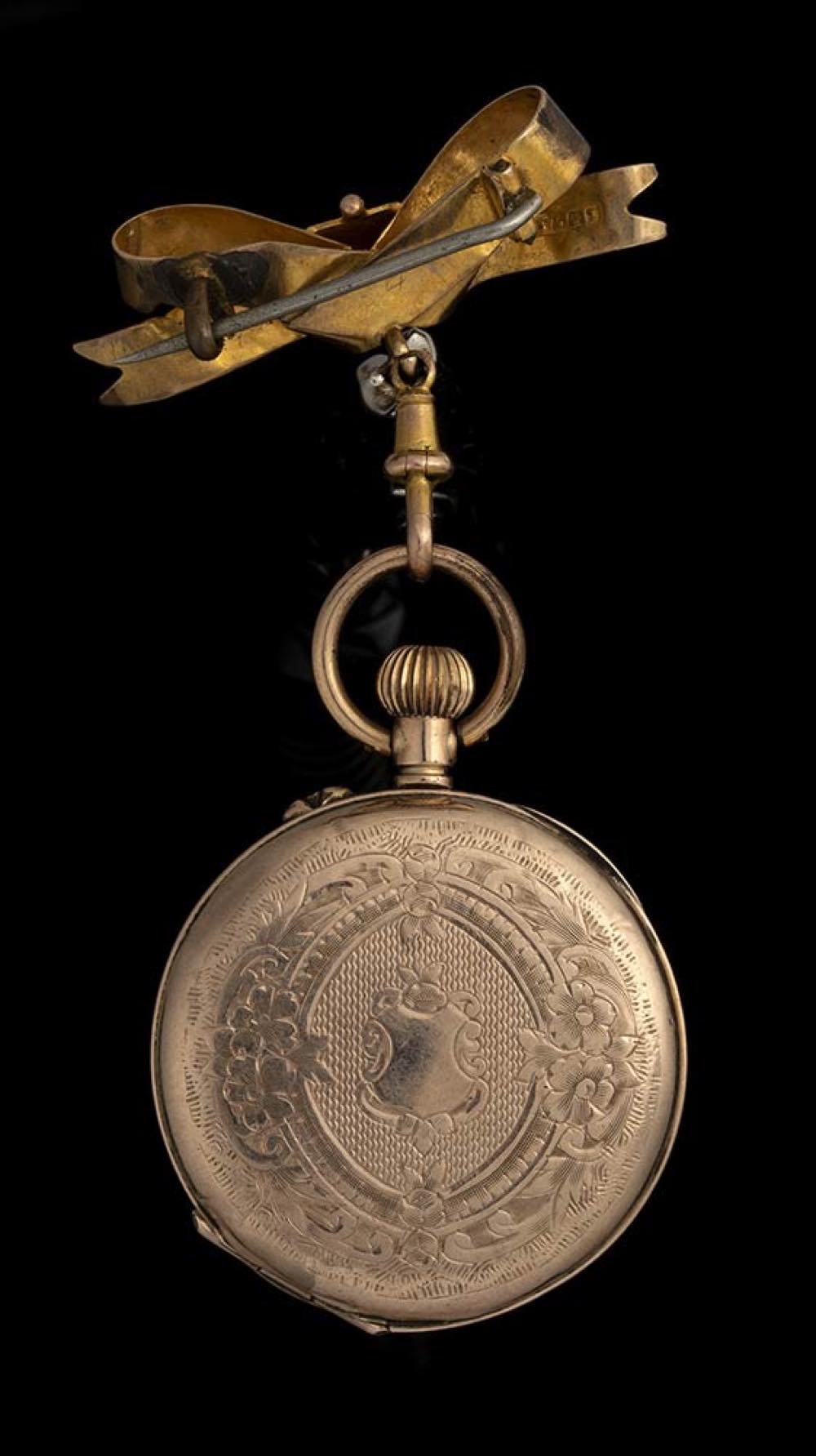 Orologio da tasca inglese in oro con spilla - Birmingham 1908