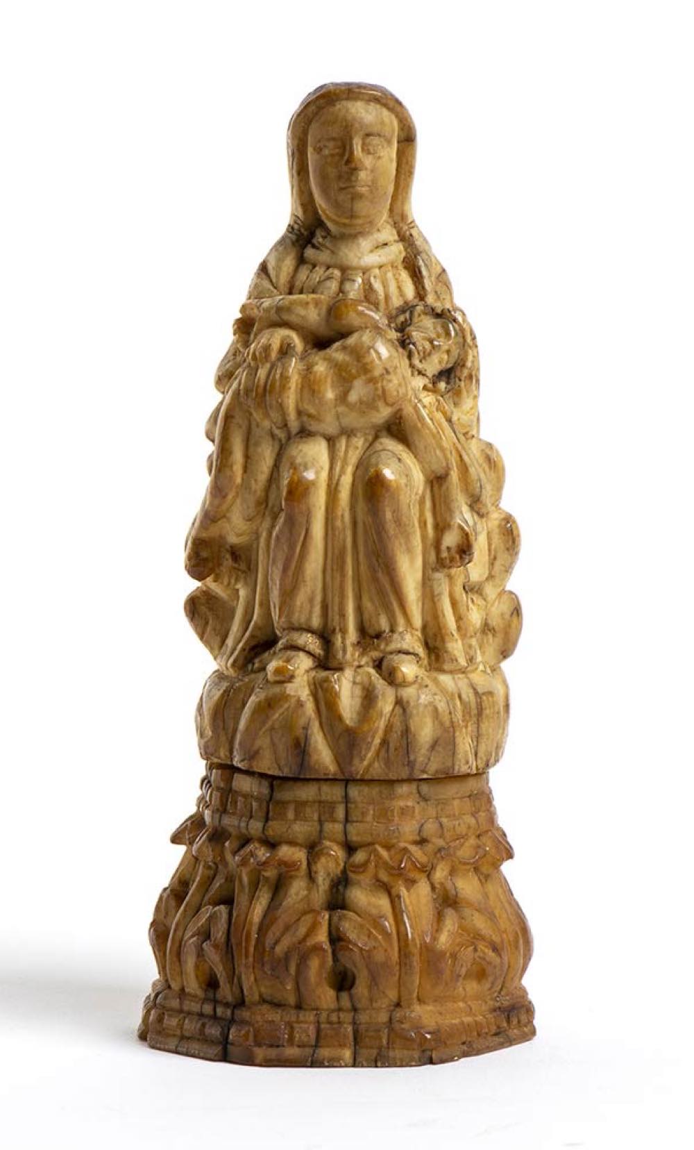 in avorio di elefante (Loxodonta africana Blumenbach, 1797 o Elephas maximus Linnaeus, 1758). La scultura ritrae il corpo di Gesù Cristo sul grembo di sua madre Maria.