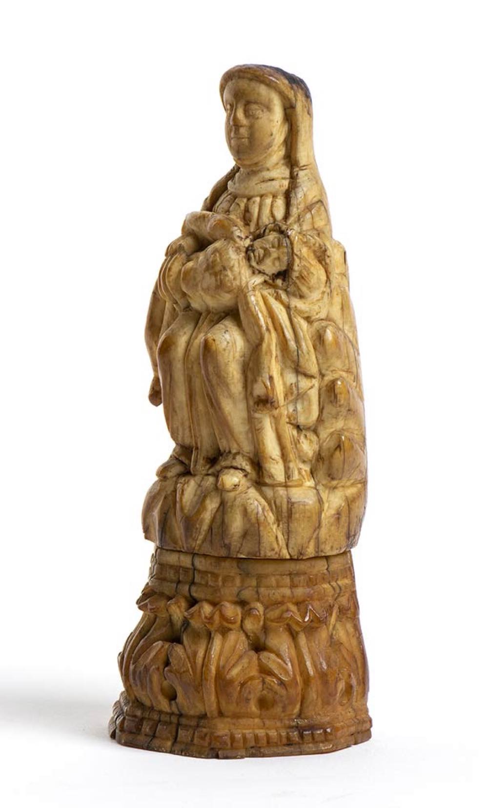Scultura Indo-portoghese in avorio raffigurante la Madonna con il Cristo morto - Goa, XVII secolo