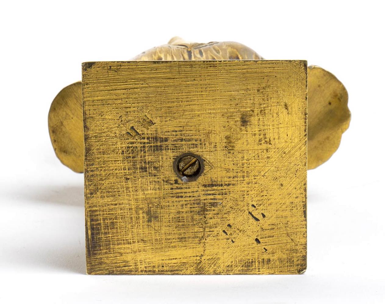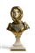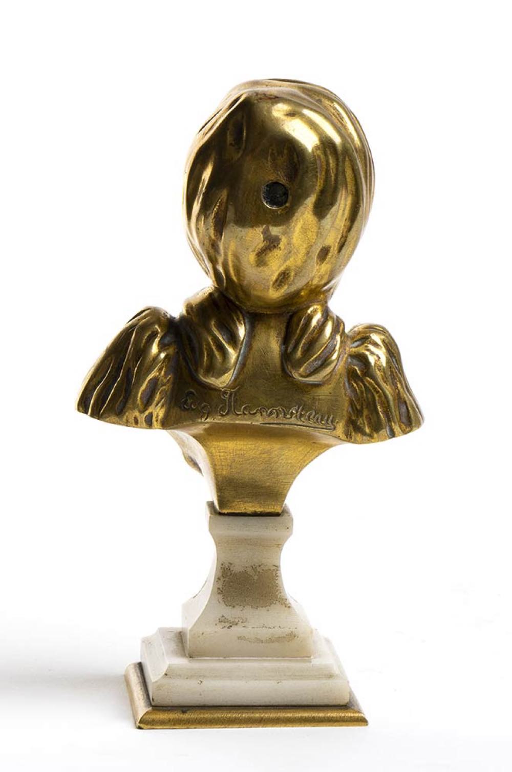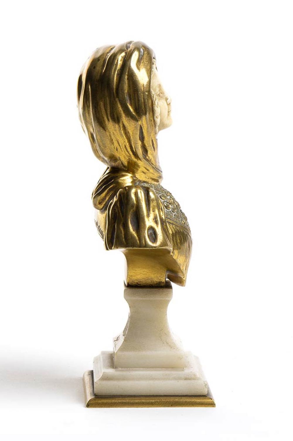 in bronzo dorato raffigurante un busto di giovane donna elegante che indossa un foulard, con il viso in avorio di elefante (Loxodonta africana Blumenbach, 1797 o Elephas maximus Linnaeus, 1758), posto su un plinto quadrato in marmo con base in bronzo.