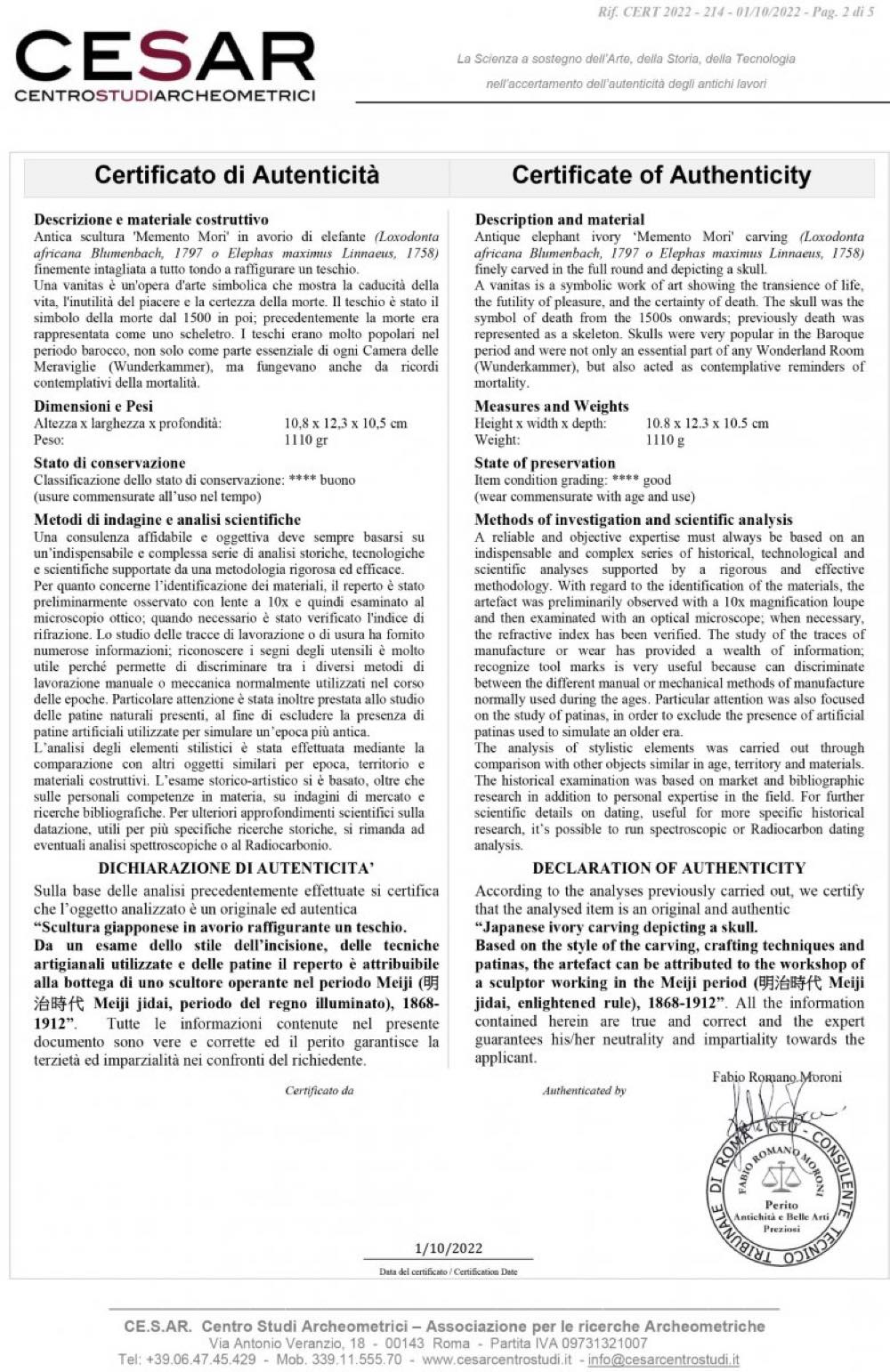 Accompagnato da certificato di autenticità Ce.S.Ar. Centro Studi Archeometrici e da certificato CITES.