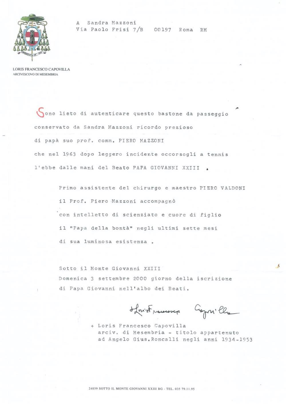 Accompagnato da autentica del Cardinale Francesco Capovilla (Pontelongo, 14 ottobre 1915 – Bergamo, 26 maggio 2016), già segretario particolare di Papa Giovanni XXIII dal 1958 al 1963.