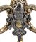 poggiante su tre piedi ritorti a volute vegetali, da cui si dipartono il candeliere centrale e i due bracci laterali decorati con tralci e foglie di vite; i tre candelieri, riccamente decorati alla base con nodi di frutta, sono sormontati da eleganti lanterne con vetro giallo su cui si innestano i coperchi a cuspide, quello centrale sormontato dalla bandiera mercantile traforata con il Leone di San Marco. Il fronte presenta un cartiglio sormontato dal corno ducale, decorato ai lati da due putti affrontati e centrato dal Leone di San Marco o Leone Marciano, simbolo secolare della città di Venezia e della sua antica Repubblica. Il leone, rappresentazione simbolica dell'Evangelista Marco, è raffigurato sotto forma di leone alato con un libro aperto recante l'iscrizione latina "PAX TIBI MARCE EVANGELISTA MEVS". Il legame del leone di San Marco con Venezia deriva dalla tradizione secondo la quale un angelo in forma di leone alato avrebbe rivolto al santo, naufrago nelle lagune, la frase: "Pax tibi Marce, evangelista meus. Hic requiescet corpus tuum" (Pace a te, Marco, mio evangelista. Qui riposerà il tuo corpo), preannunciandogli che il suo corpo avrebbe un giorno trovato riposo e venerazione in quelle terre.