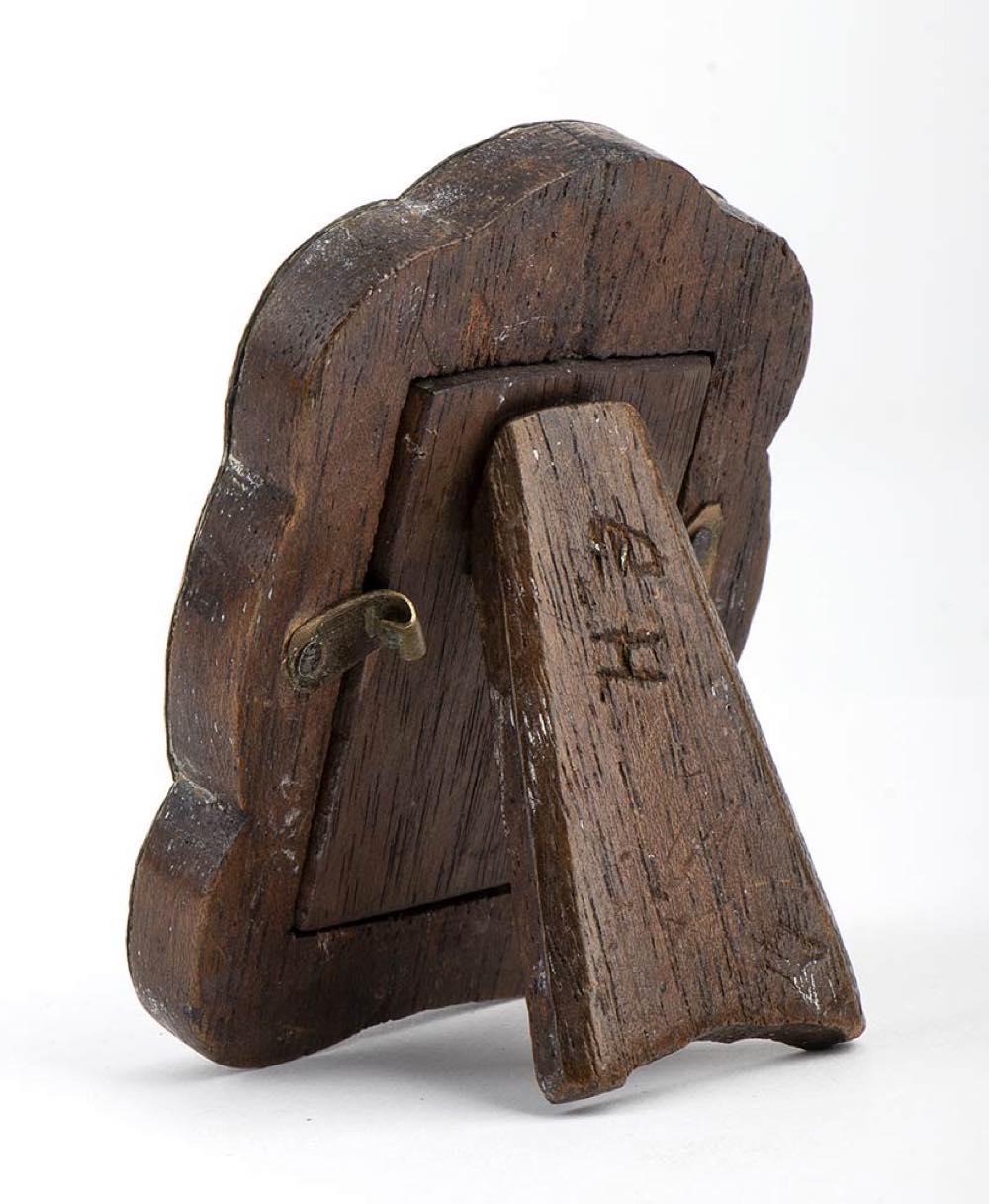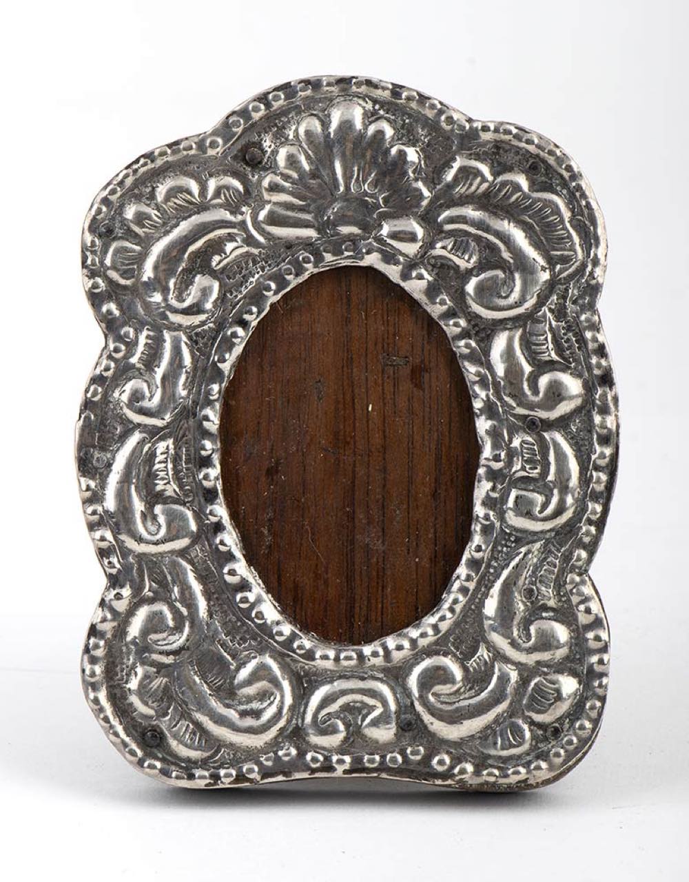 sbalzata e cesellata con decori floreali. Argento 925/1000 su supporto ligneo.