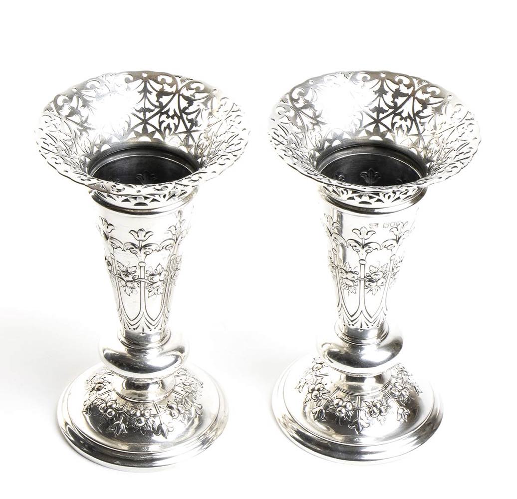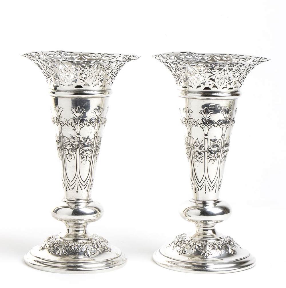Coppia di vasi edoardiani inglesi in argento - Londra 1901, maestri argentiere WILLIAM HENRY SPARROW