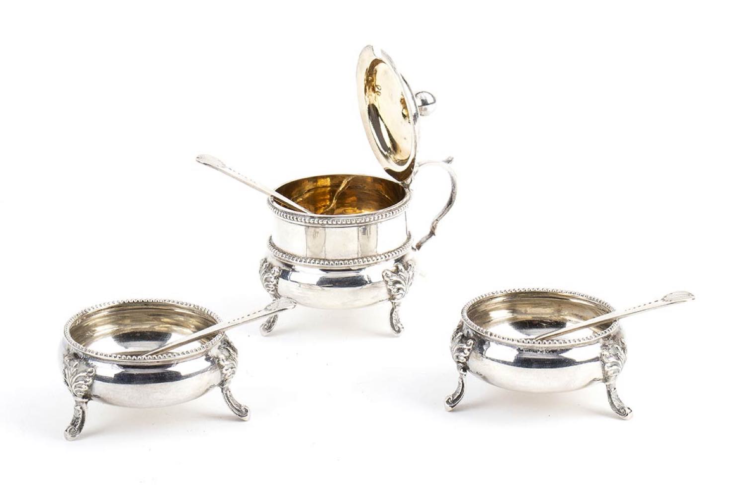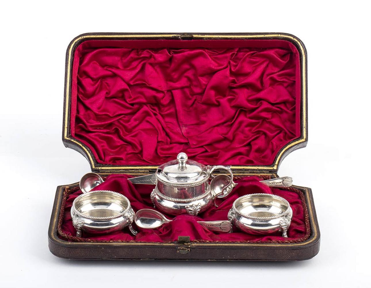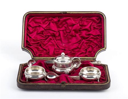 Lot 433 | Saliera, pepiera e mostardiera inglesi vittoriane in argento - Birmingham 1885, maestri argentieri HILLIARD & THOMASON