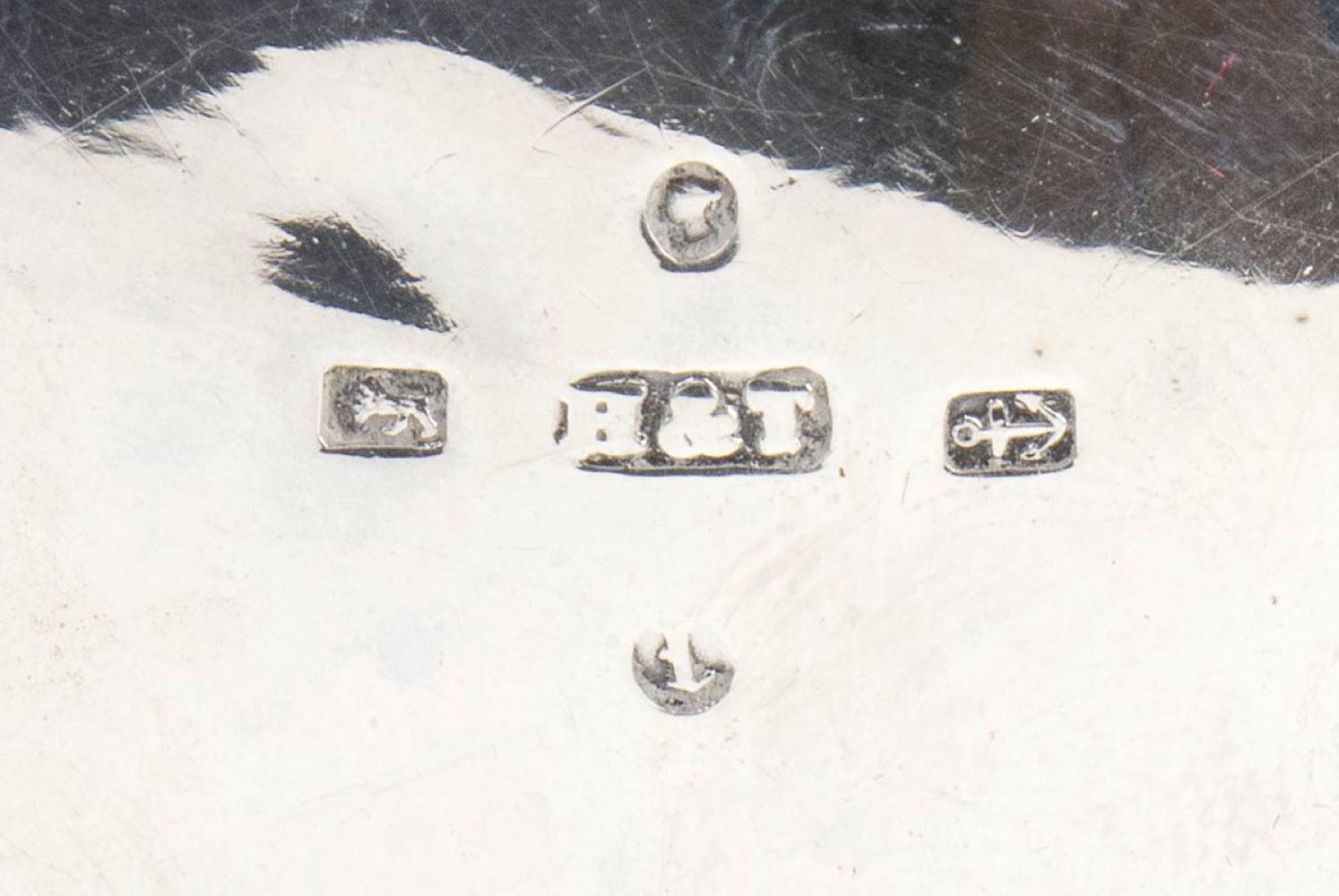 con custodia originale e cucchiaini. Argento 925/1000, serie completa di marchi Birmingham 1886-1886, argentieri Hilliard & Thomason.