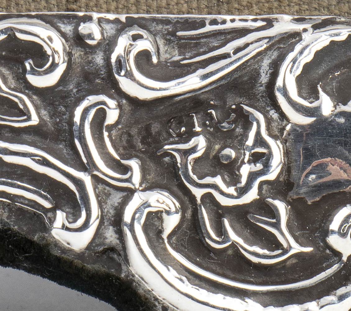 di forma rettangolare a decori floreali. Argento 925/1000, serie completa di marchi Birmingham 1900-1901, argentieri "G & C H".