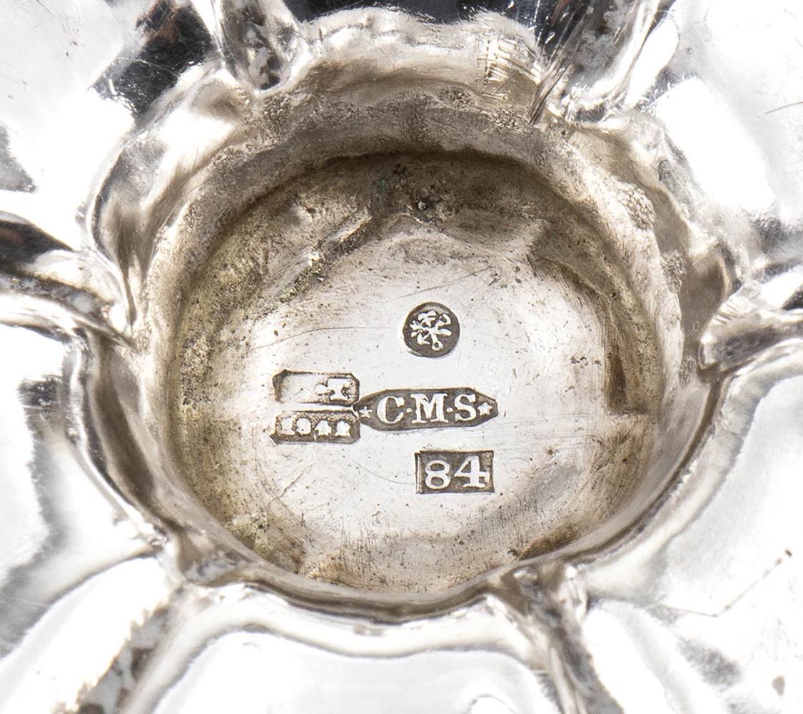 di forma circolare decorata con volute floreali. Serie completa di marchi per l'argento al titolo di 84 zolotniks (875/1000) in uso a San Pietroburgo nel 1879, argentiere