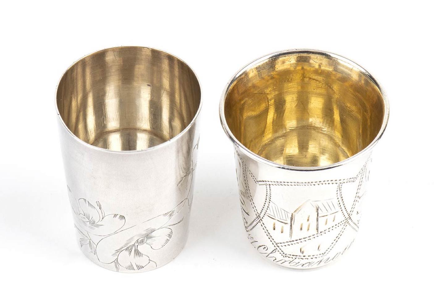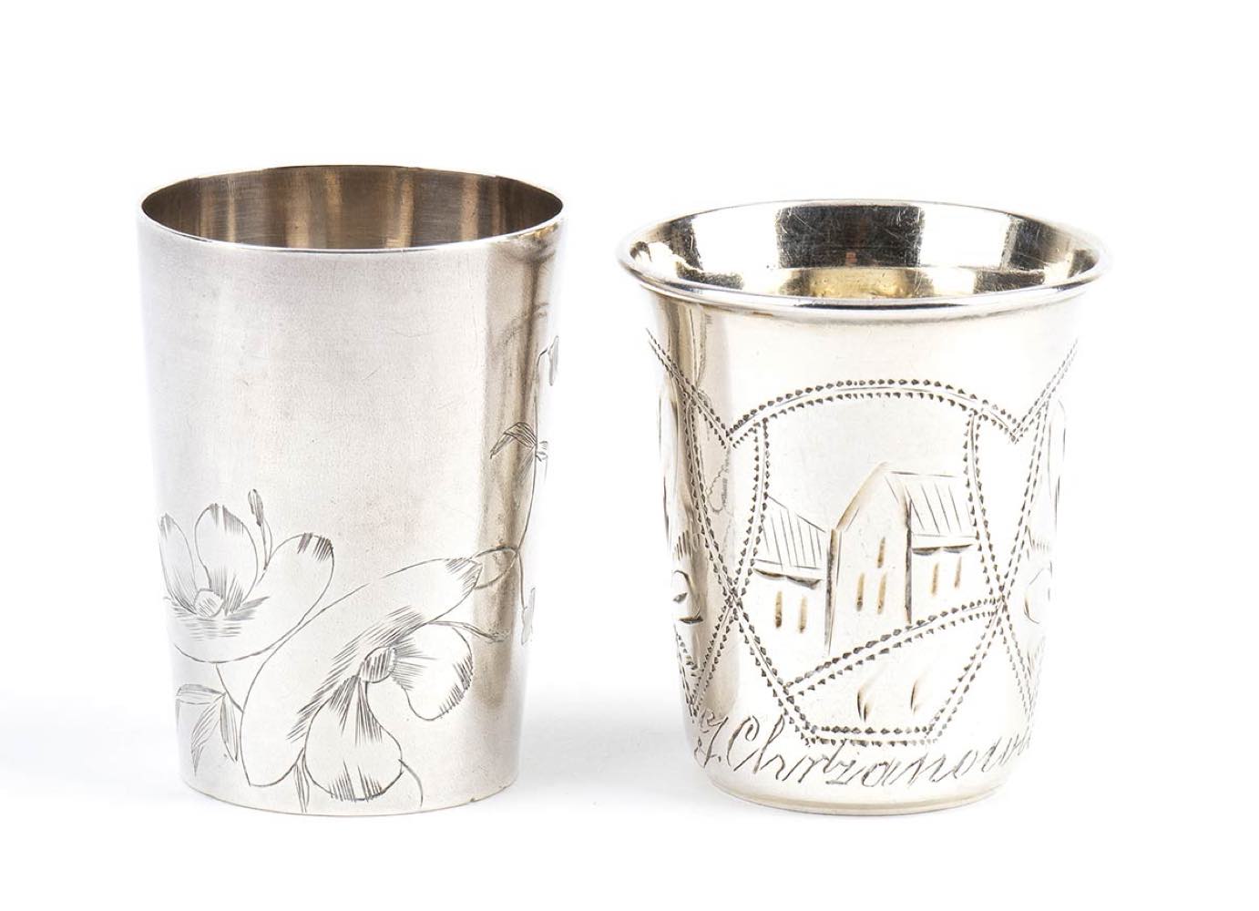 Due Kiddush goblets russi in argento - Kiev 1899-1908 e Mosca 1908-1926