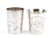 b) di forma cilidrica inciso con vedute e decori floreali, serie completa di marchi per l'argento al titolo di 84 zolotniks (875/1000) in uso a Kiev dal 1899 al 1908. Altezza 4,5 cm, diametro bordo 4 cm, peso 20 gr.