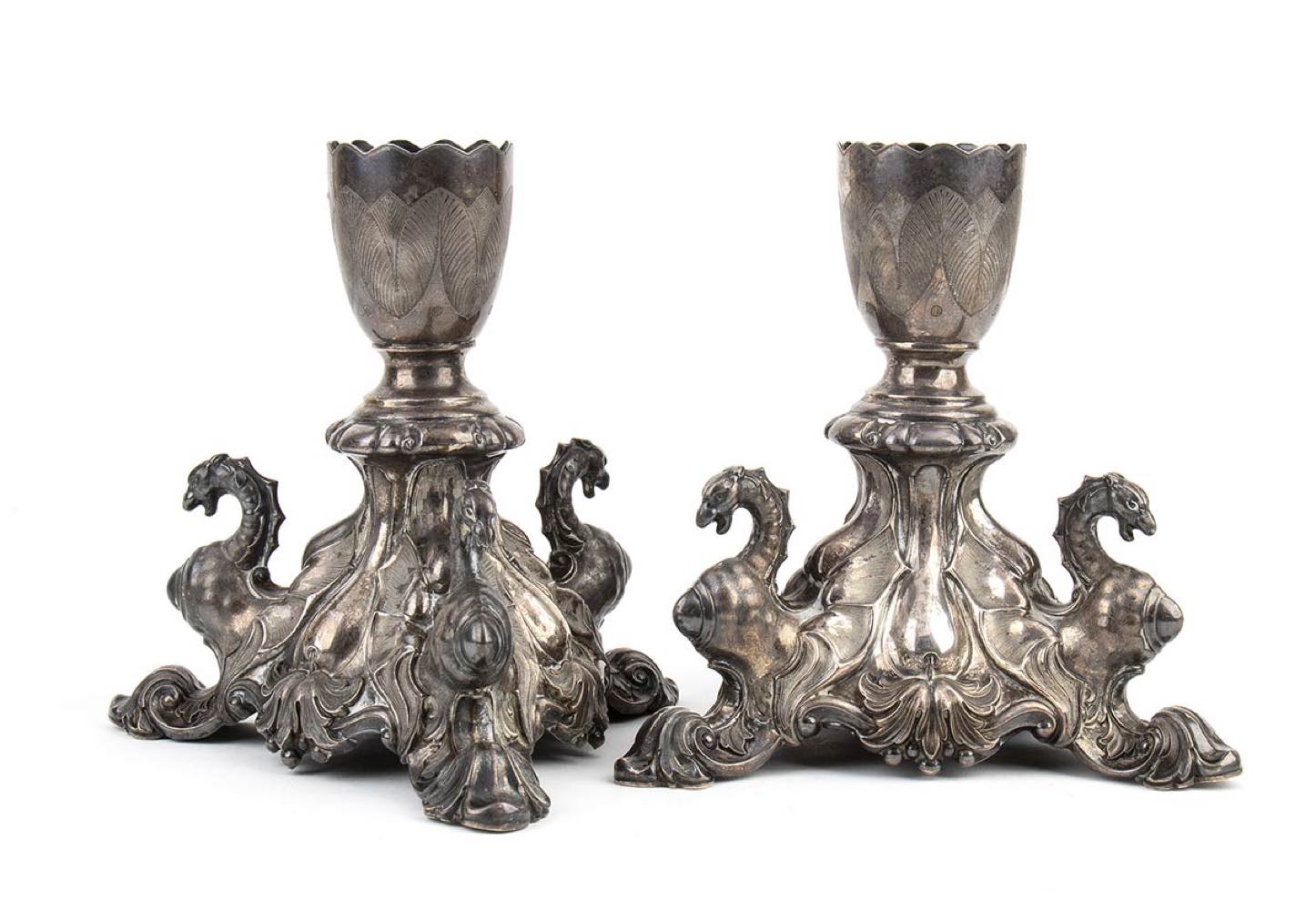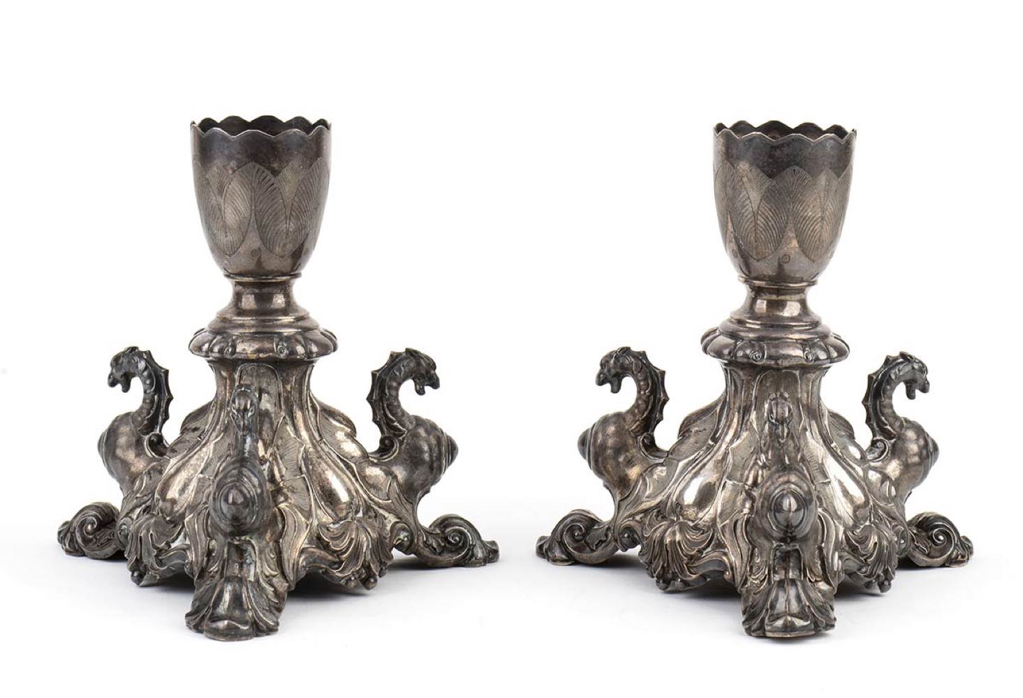 Coppia candelieri portacero tedeschi in argento - XIX secolo