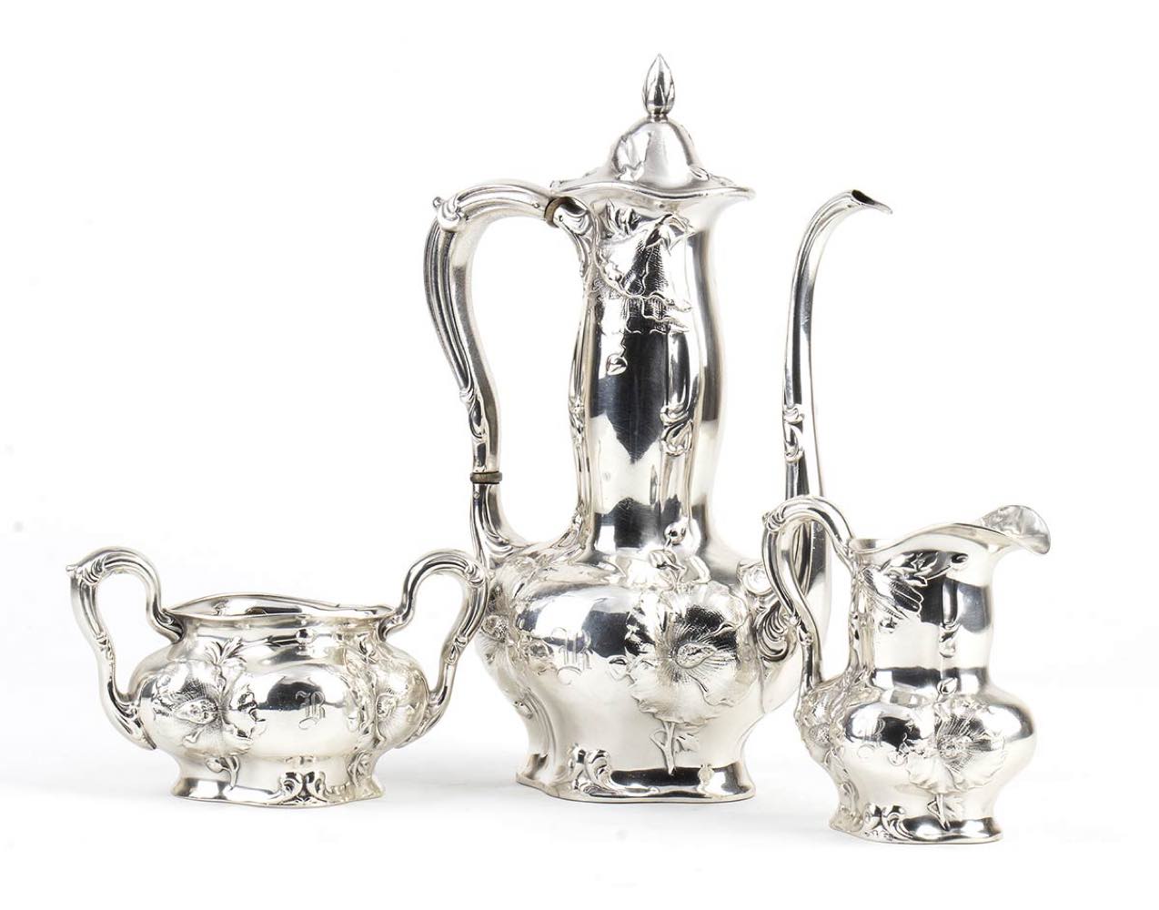 Servizio Liberty americano da caffe in argento - ALVIN MFG Co. - fine XIX inizio XX secolo
