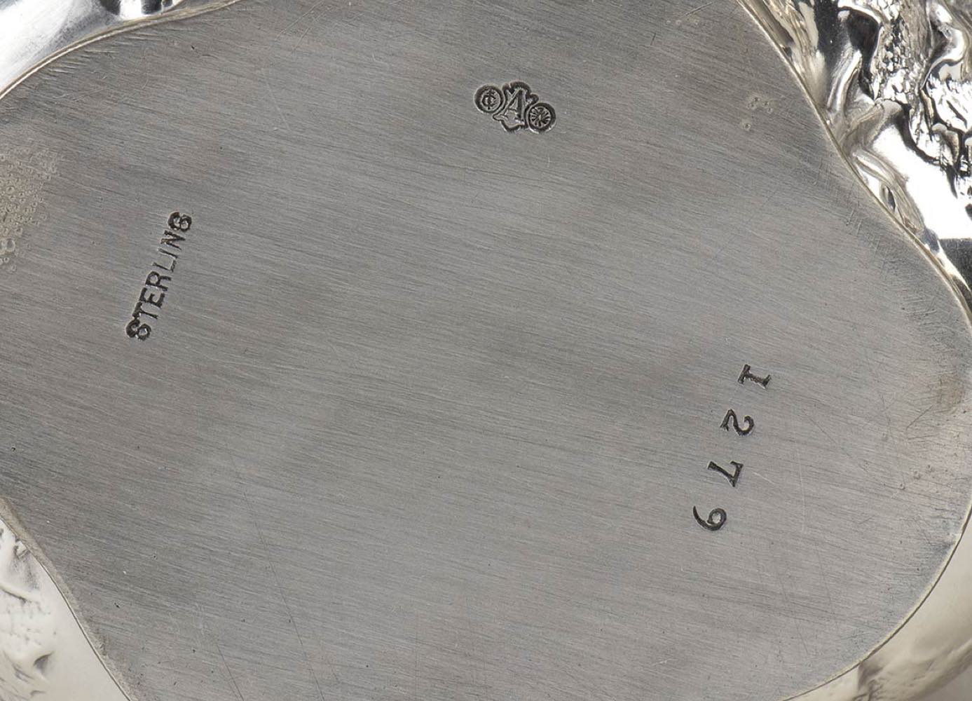composto da teiera, zucheriera e lattiera a decori floreali. Argento 925/1000, punzonati "Sterling" e "1279", argentiere "Alvin Mfg Co"Irvington, New Jersey.