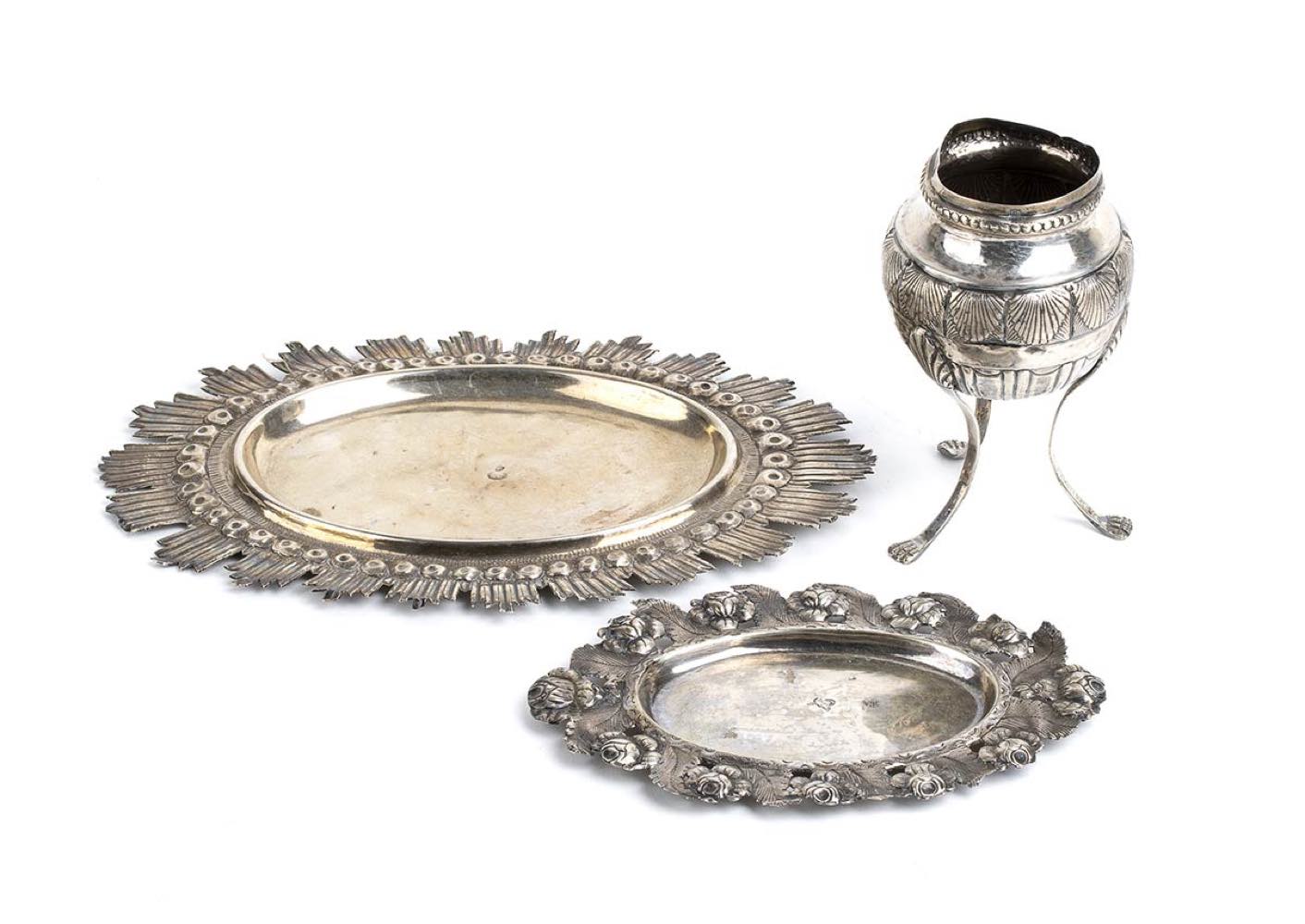 Lotto composto da un incensiere e due vassoietti in argento - Napoli 1832-1872, Turchia inizio XX secolo