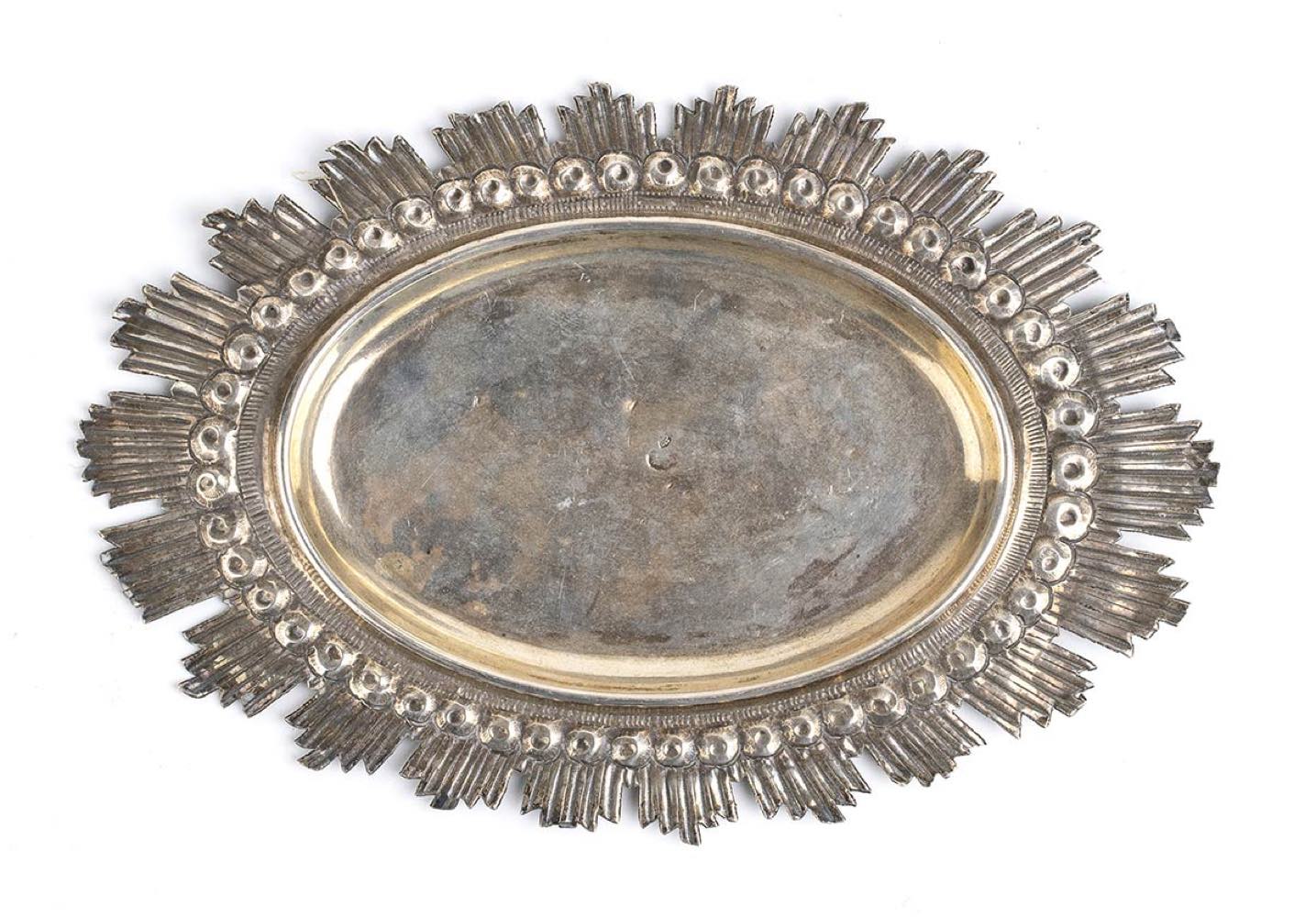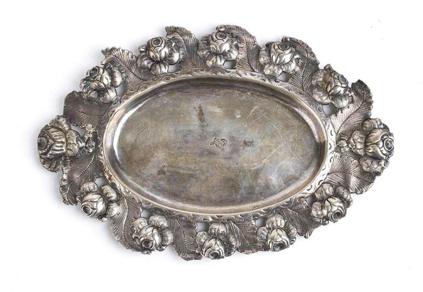 c) vassoietto ovale, il bordo sbalzato e cesellati a motivi floreali. Punzonati con marchi in uso in Turchia prima del 1923.
