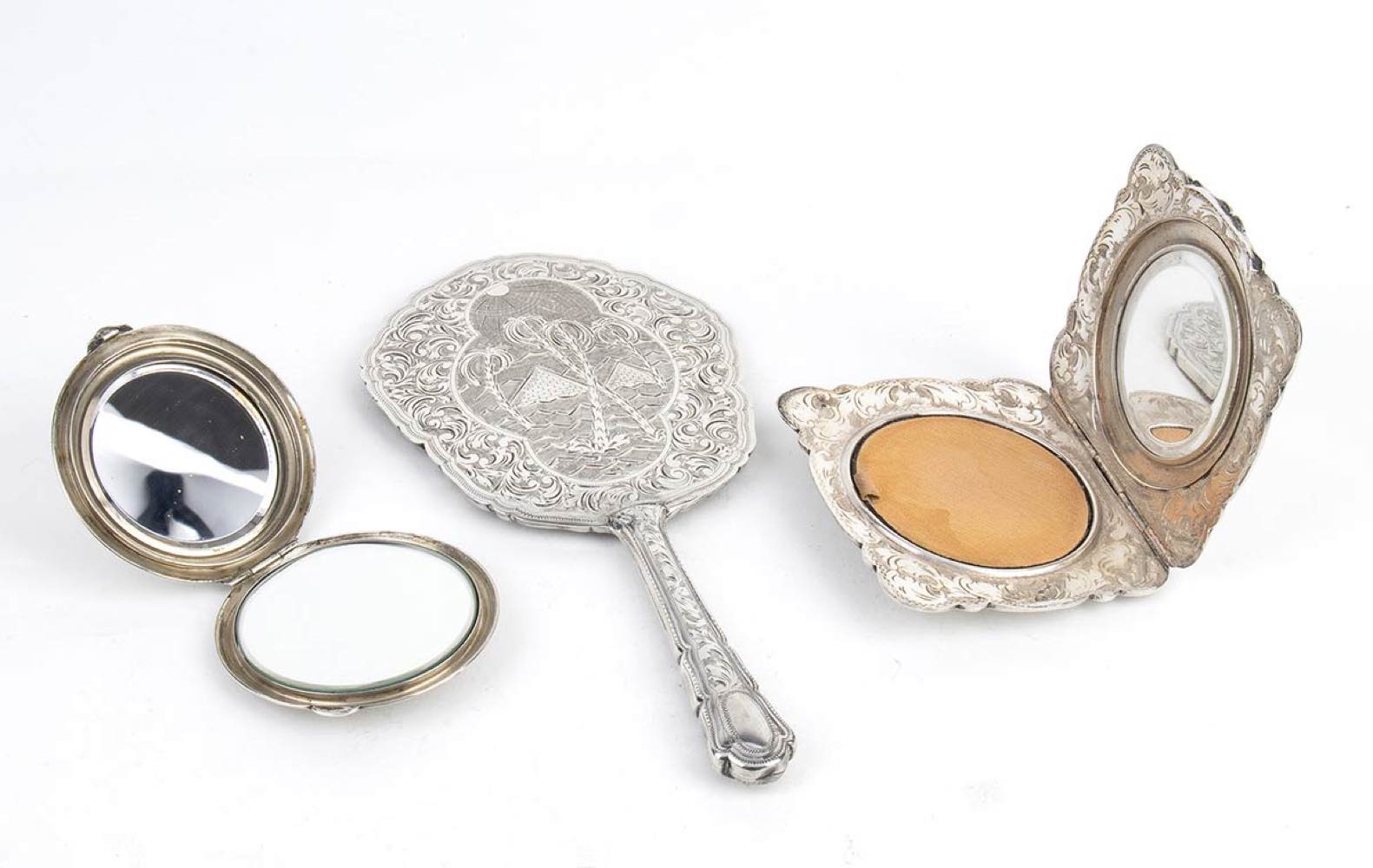 Lotto composto da due Portacipria italiano ed uno specchio in argento - 1930s - 1950s