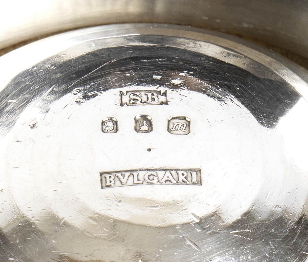 di forma circolare con base gradinata. Argento 958/1000, punzonato "BVLGARI" e serie completa di marchi Londra 1967-68.