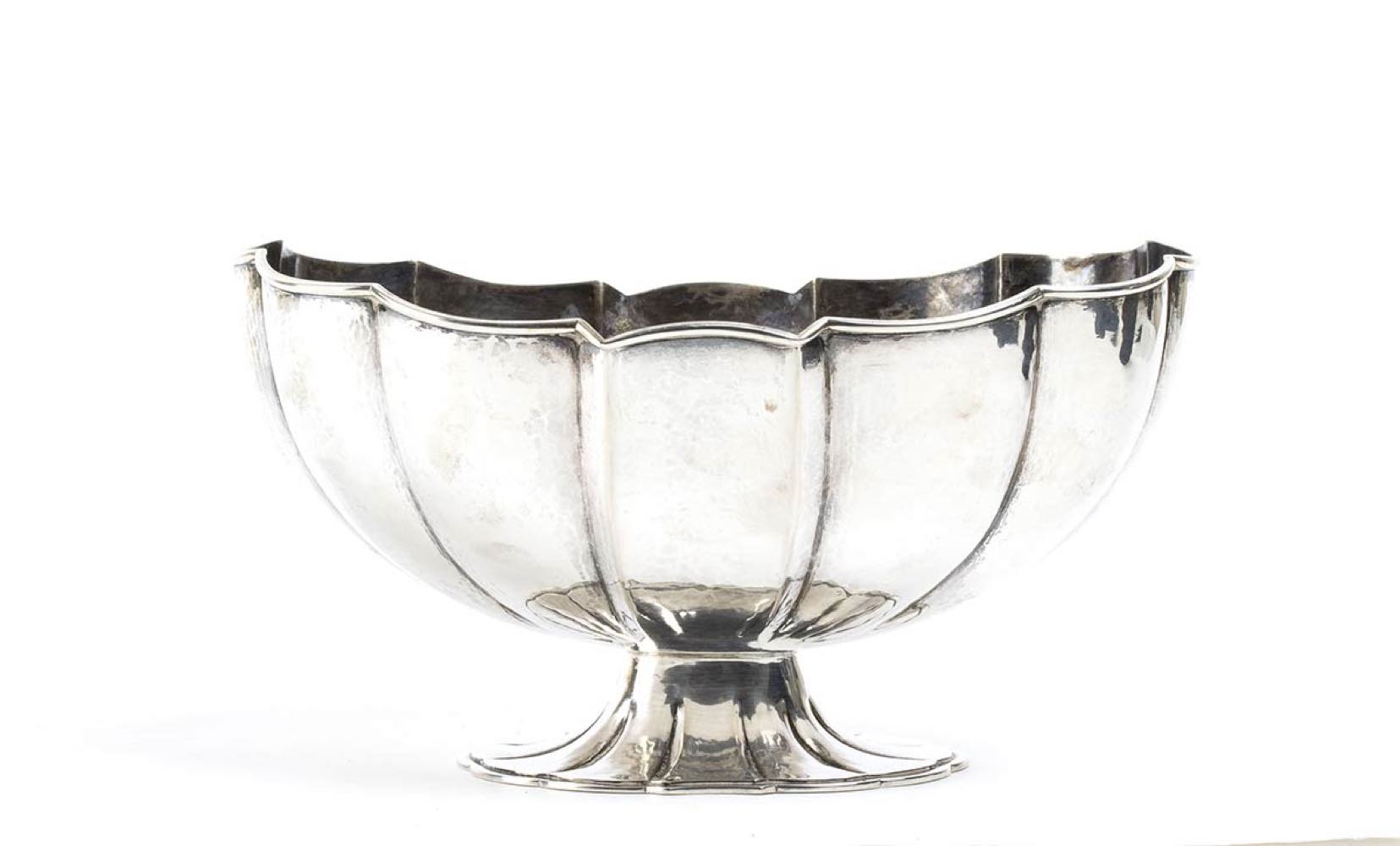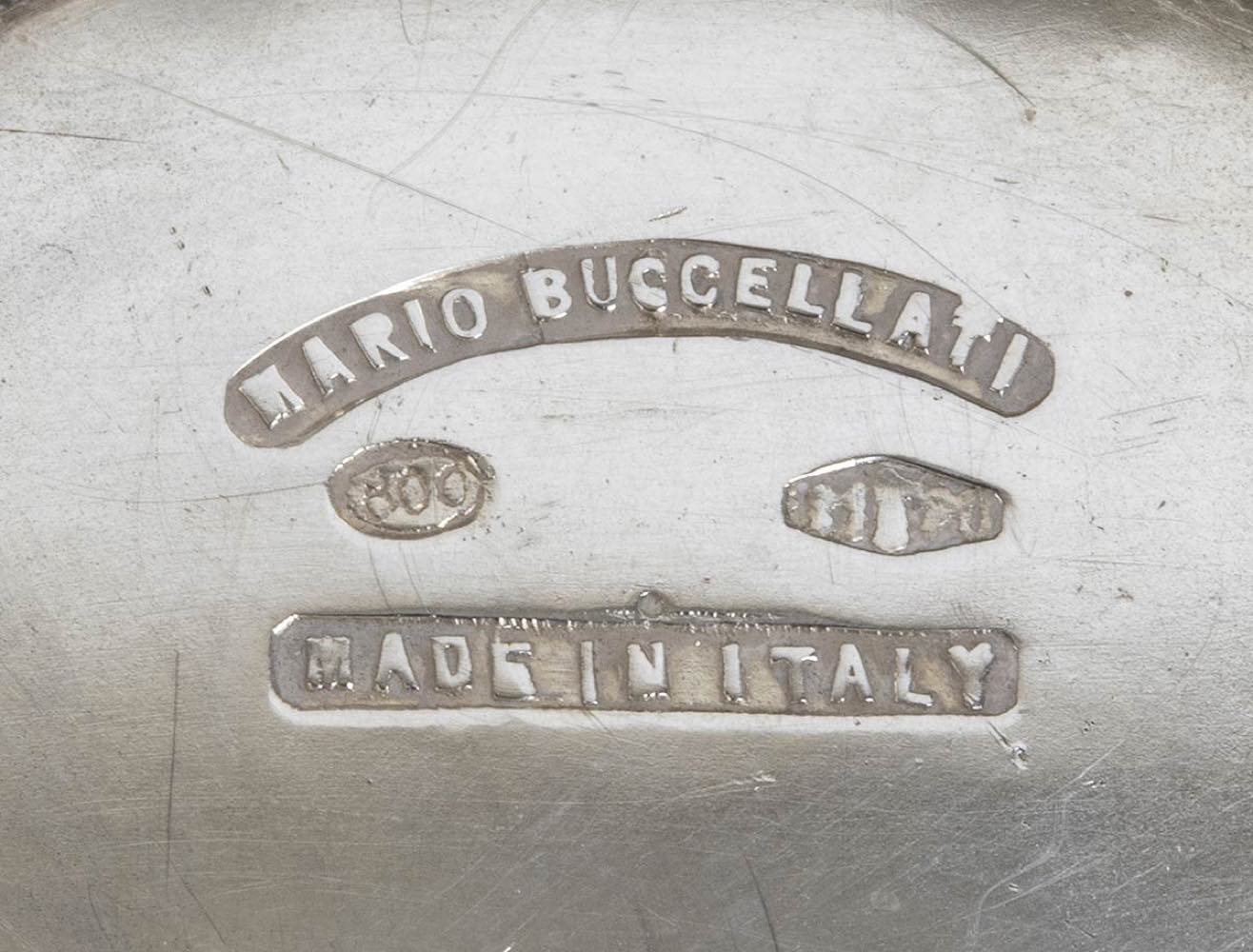 di forma ovale, corpo e piede con nervature verticali. Argento 800/1000 punzonato "MARIO BUCCELLATI - 800 - marchio di epoca fascista".